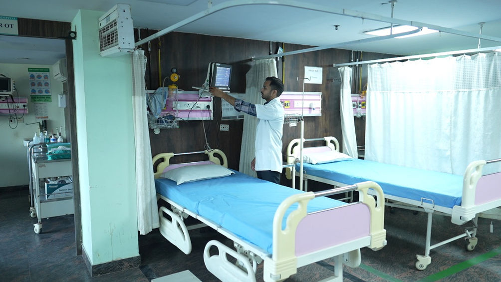 Our ICU is designed to manage critically ill patients requiring continuous monitoring and advanced care. We also have dedicated units such as NICU (Neonatal ICU) and CCU (Cardiac Care Unit) for specialized cases.